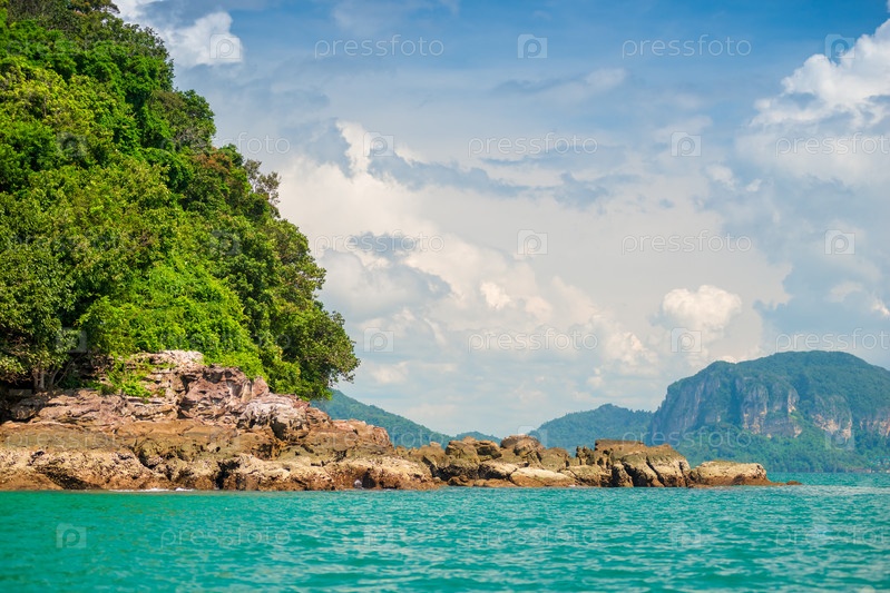 Скалистое побережье острова с горами живописные виды на Таиланд