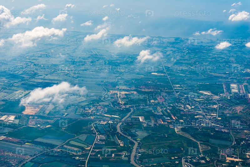 Земля Таиланда с большой высоты вид из окна самолета