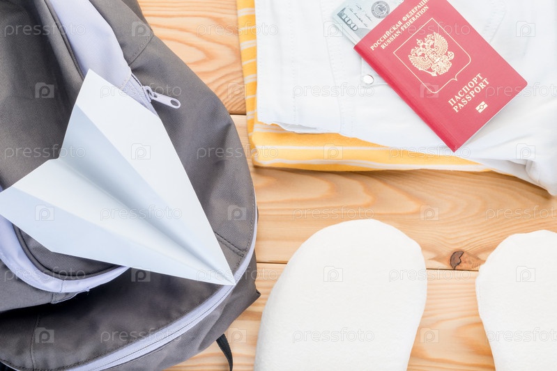 Рюкзак, одежда и документы готовы к поездке на отдых