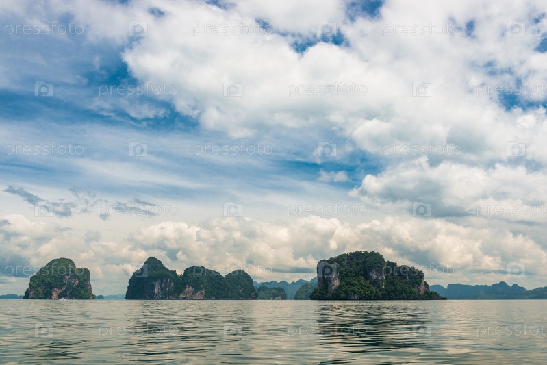 Зеленые тропические скалы - острова в Андаманском море недалеко от провинции Краби, Таиланд