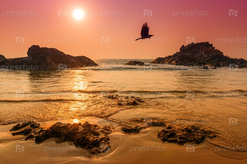 Солнце над морем и летающая ворона