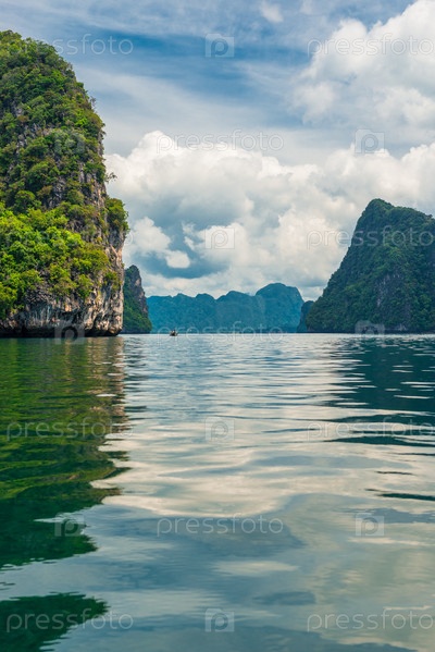 Вертикальный живописный морской пейзаж с видом на скалы и залив, Таиланд