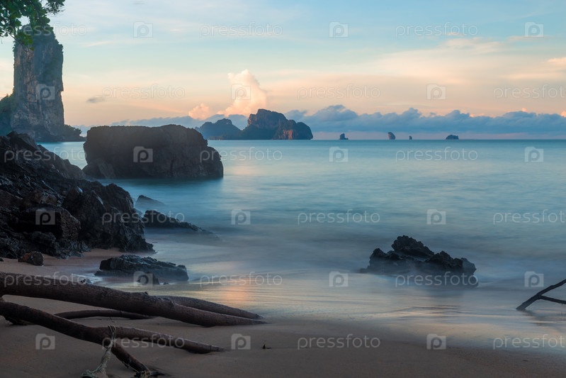 Камни и скалы на рассвете красивые пейзажи Таиланда, курорт Краби