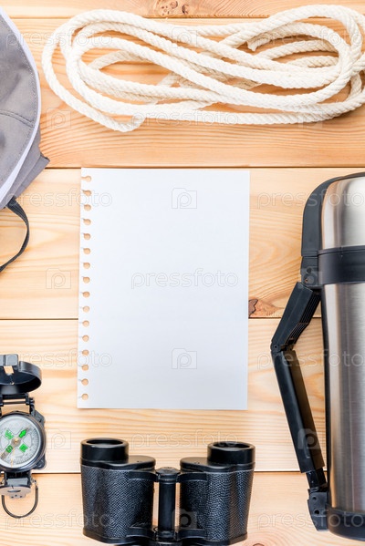 Туристическое оборудование для экстремального трекинга и пустое место в центре рамы
