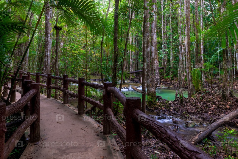 Массивный забор на пешеходной тропе в красивом лесу Таиланда