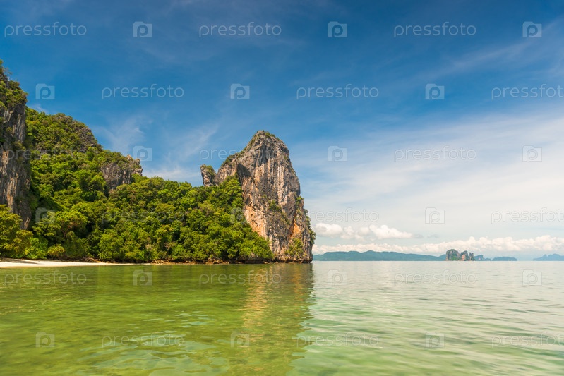 Горизонтальное мореплавание - Андаманское море и скалистое побережье на острове в Таиланде
