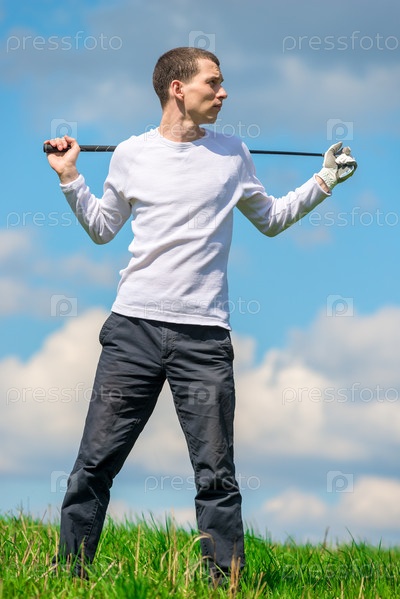 Портрет успешного игрока в гольф-клуб на поле