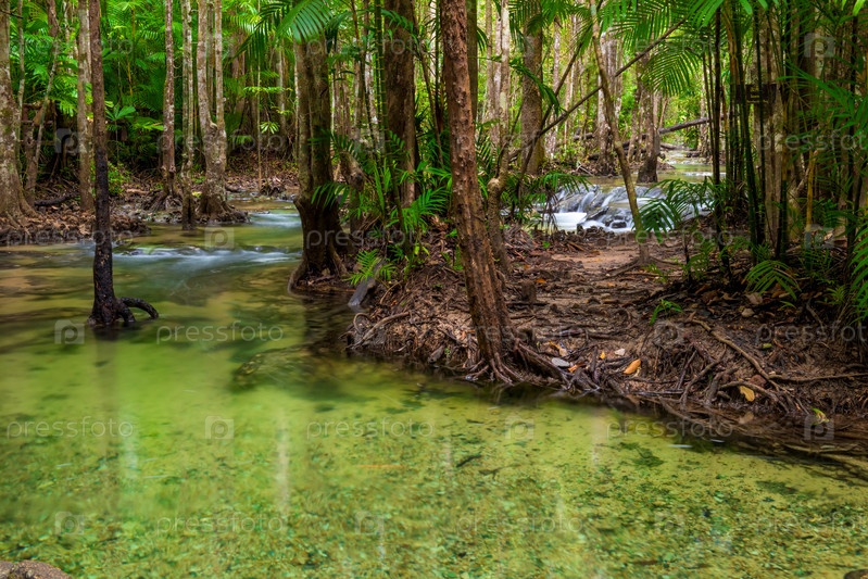 Чистая река, протекающая в джунглях Таиланда в провинции Краби