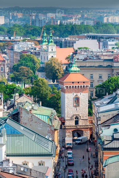 Вид сверху на Флорианские ворота и город Краков, Польша