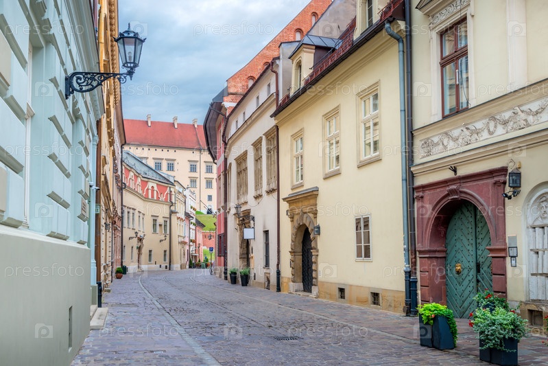 Узкие пешеходные улицы старого европейского города Кракова, Польша