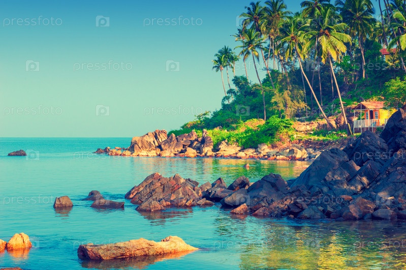 Вид на пляж для поздравительных открыток в Гоа