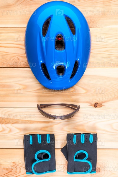 Велосипедный шлем и пара перчаток верхний вид вертикальный снимок