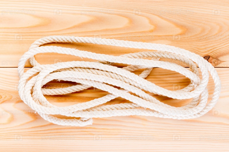 Прочная веревка на деревянном полу крупный план
