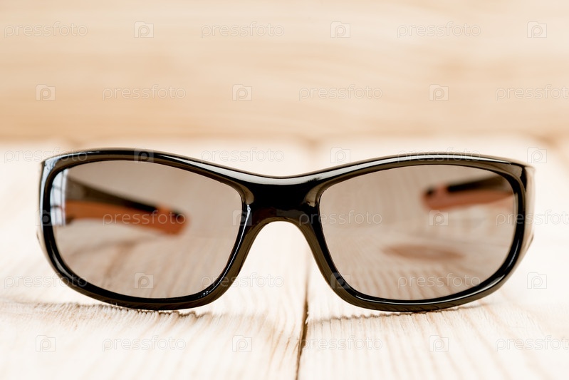 Солнцезащитные очки с коричневыми поляризующими очками лежат на деревянной поверхности, были сделаны близкие фотографии