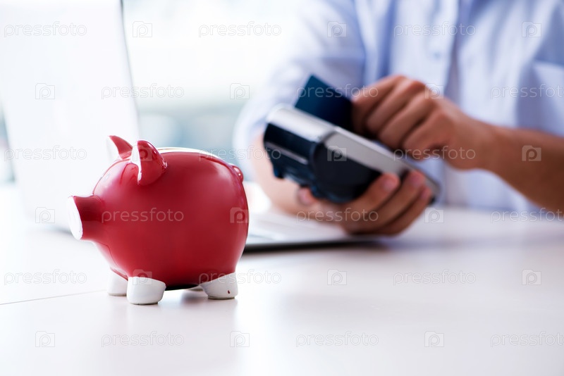 Человек обрабатывает транзакции по кредитным картам с POS-терминалом