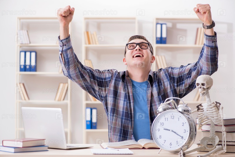 Ученик и скелет готовятся к школьным экзаменам