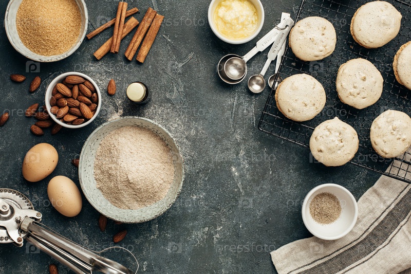 Вкусные домашние миндальные печенье и ингредиенты для выпечки