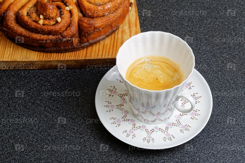 Чашка кофе и булочка