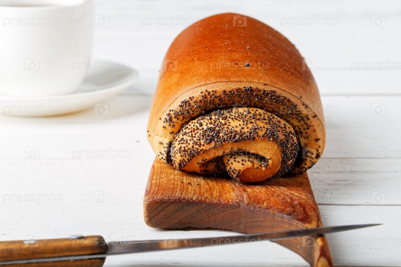 Рулет с маком и чашкой чая