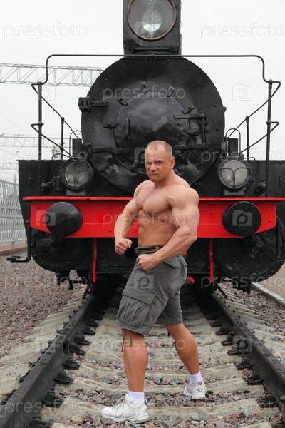 Сильный мужчина у паровоза