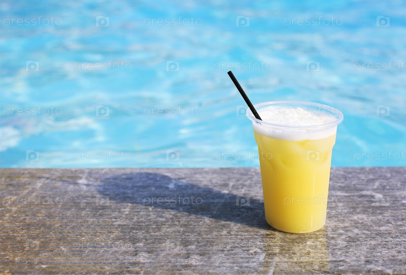 Стакан тропического коктейля у бассейна