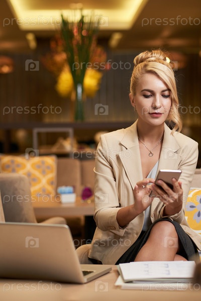 Деловая женщина проверяет телефон