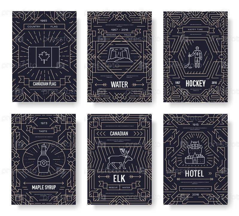 Канада тонкая линия карточки брошюры набор. Страна традиционный шаблон flyear, журналы, плакаты, обложки книг, баннеры. Архитектурные контуры приглашение концепции фона. Качество оформления современных страниц
