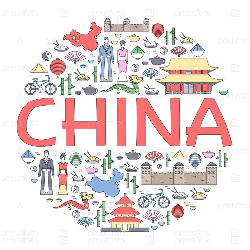 Страна Китай путешествие отпускное руководство по товарам, местам и особенностям. Набор архитектуры, моды, людей, предметов, концепции фона природы. Инфографический шаблон дизайна для веб-сайта и мобильных устройств на плоском стиле
