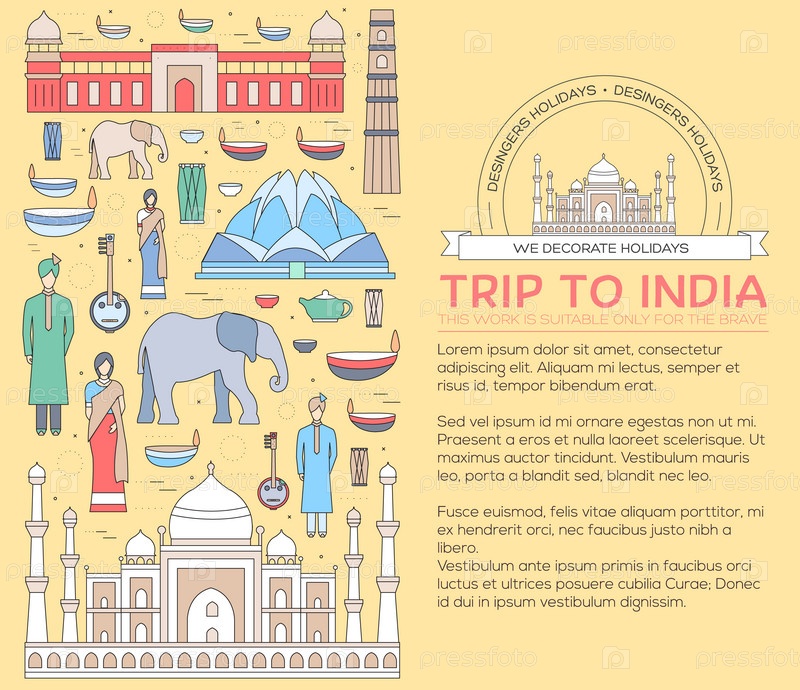 Страна Индия путешествие отпускное руководство по товарам, местам и особенностям. Набор архитектуры, моды, людей, предметов, концепции фона природы. Дизайн шаблонов инфографики для веб-и мобильных устройств на тонких линиях