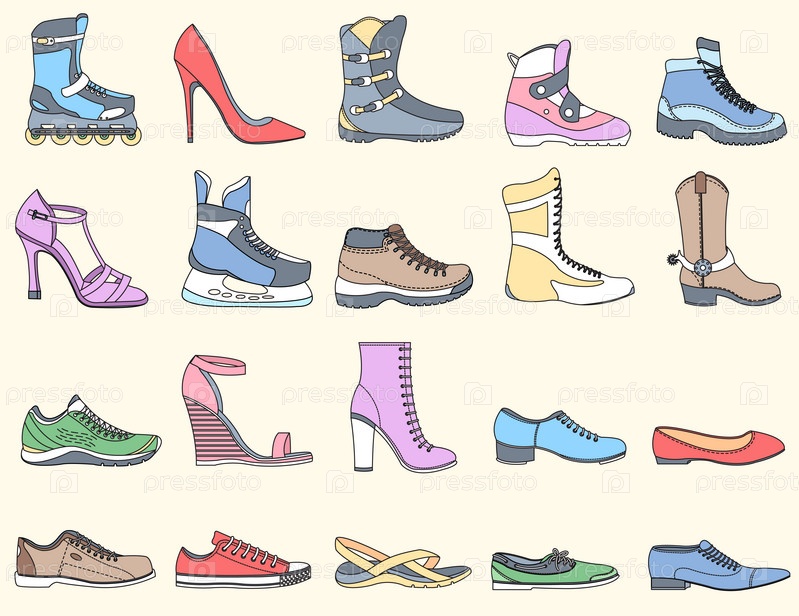 Модная обувь в спорте, стильная, современная, классическая, элегантная, кожаная, молодая, концепция трендового стиля. плоские тонкие линии иконный набор обуви элементы концепции фоновой векторной иллюстрации