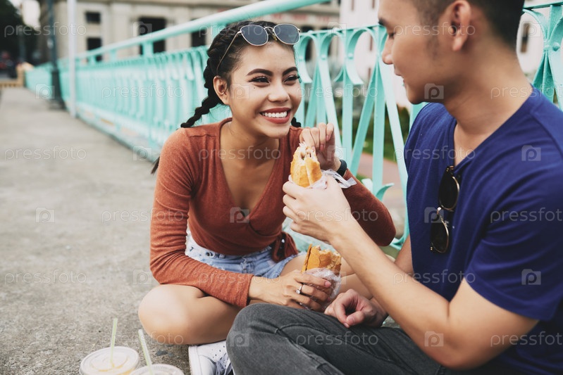 Пара наслаждается сэндвичами