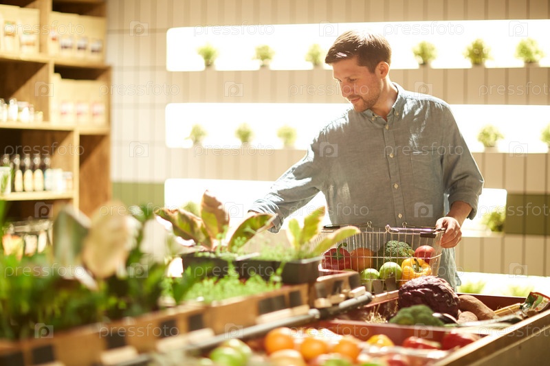 Выбор овощей в супермаркете