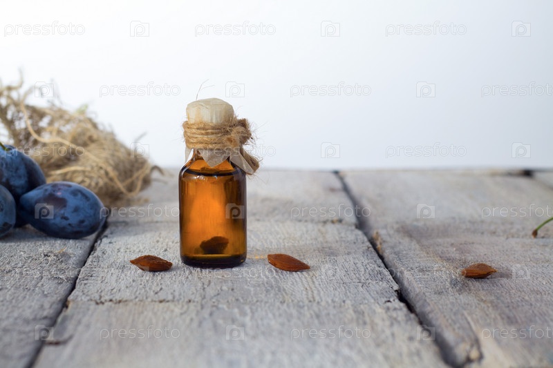 Бутылочка эфирного масла со спелыми сливами
