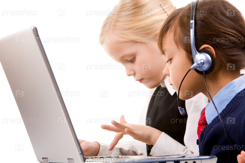 Фото серьезной девушки с гарнитурой, которая смотрит на дружку, печатающую
