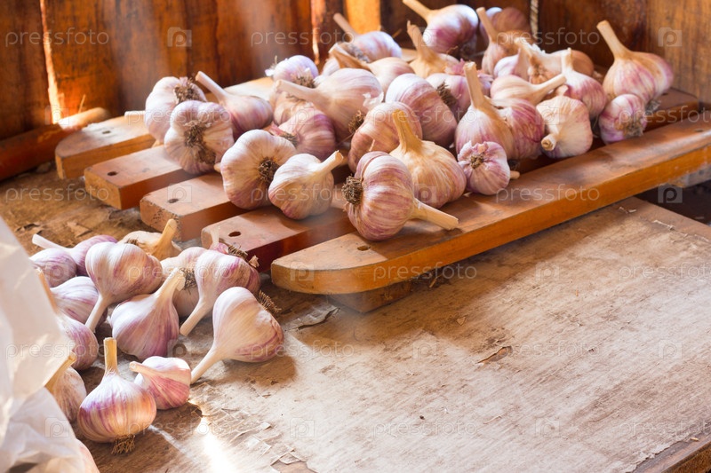 Чеснок на деревянном фоне