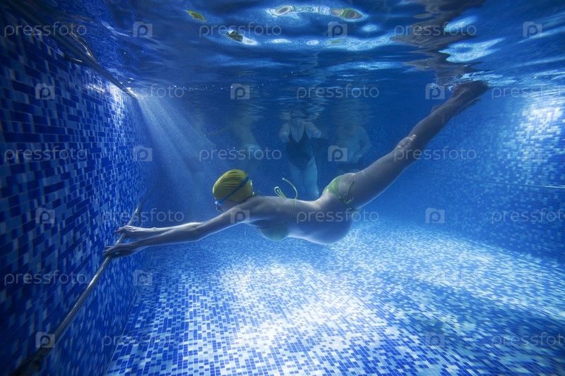 Молодая беременная женщина под водой в бассейне
