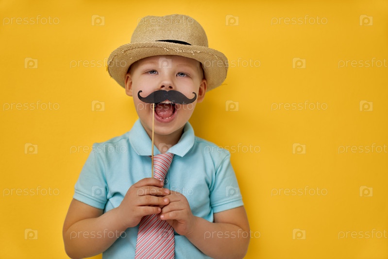 Мальчик, играющий и держащий бумажные усы