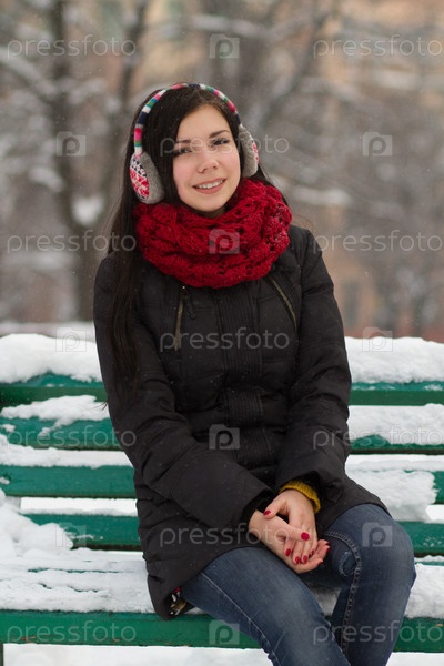Милая девушка-брюнетка на снегу