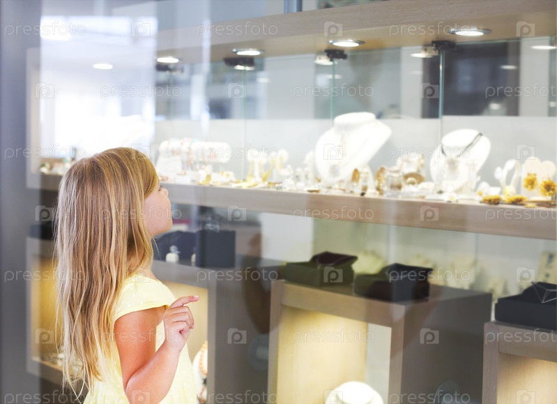 Маленькая девочка смотрит на витрину