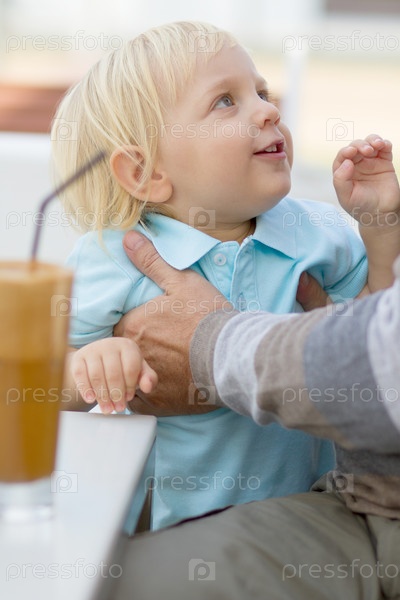 Отец держит его маленького сына