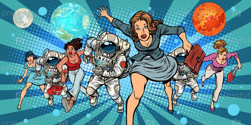 Женщины и астронавты, бегущие в будущее в космосе