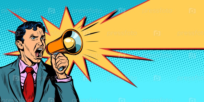 Бизнесмен с мегафоном желтого луча