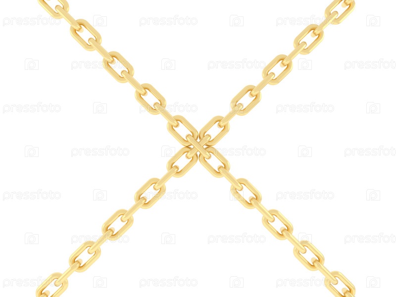 Две золотые цепочки соединены между собой. 3D-рендеринг