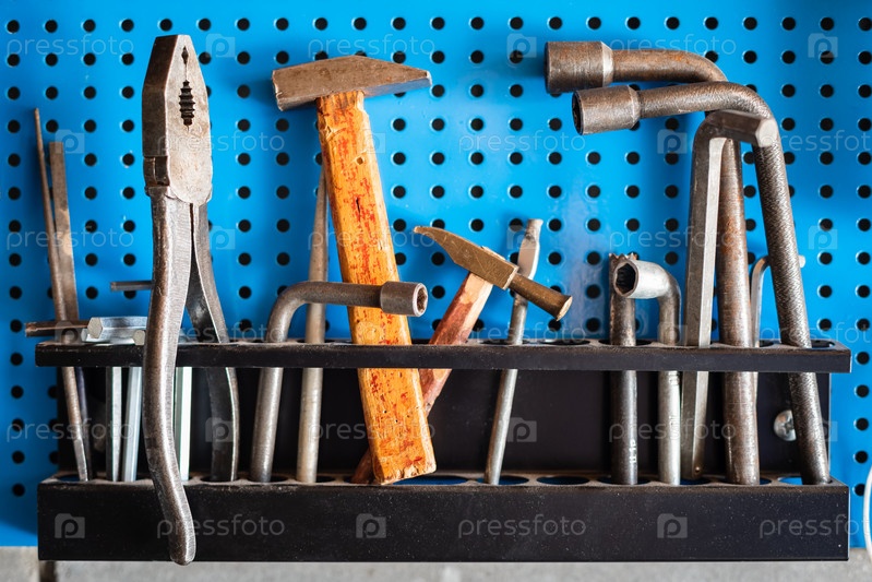 Рабочие инструменты: старые молотки. гаечные ключи, плоскогубцы