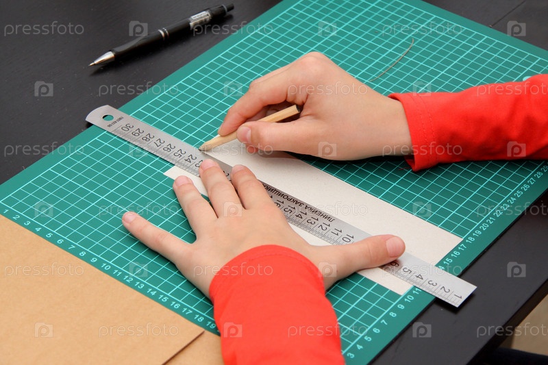 Ребенок чертит карандашом по линейке