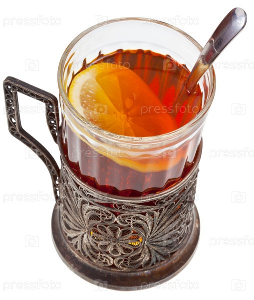 Черный чай с лимоном в старинных стаканах