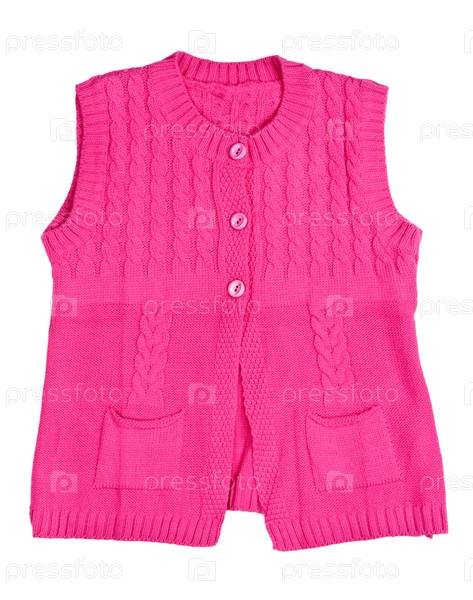 Вязаный розовый жилет