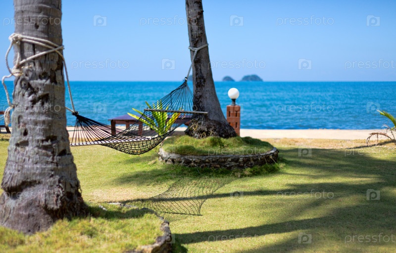 Гамак между двумя пальмами на тропическом острове