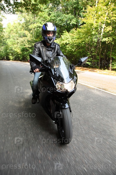 Мотоциклист едет по дороге
