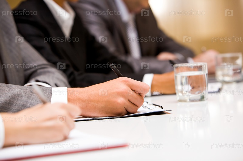 Близкий план рук с карандашами, которые делают заметки во время конференции